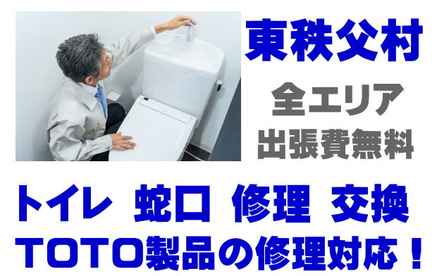 東秩父村でTOTO製品の修理業者をお探しなら当社までお気軽にお問い合わせください。トイレ便器タンクの故障、便座の修理、蛇口やシャワーの水漏れなどTOTO製品に関するトラブルなら何でもご相談ください。